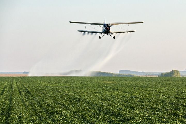 在北大荒集團黑龍江五大連池農(nóng)場有限公司大豆地塊,農(nóng)用飛機在進(jìn)行“一噴多促”作業(yè)(2024年8月20日攝)。新華社發(fā)(陸文祥攝)
