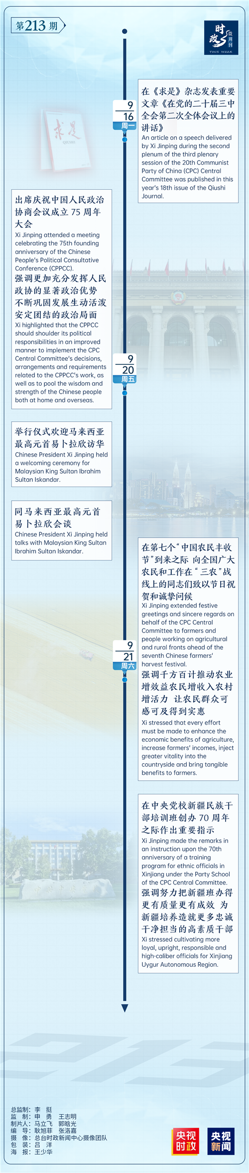 時(shí)政微周刊丨總書(shū)記的一周(9月16日—9月22日)