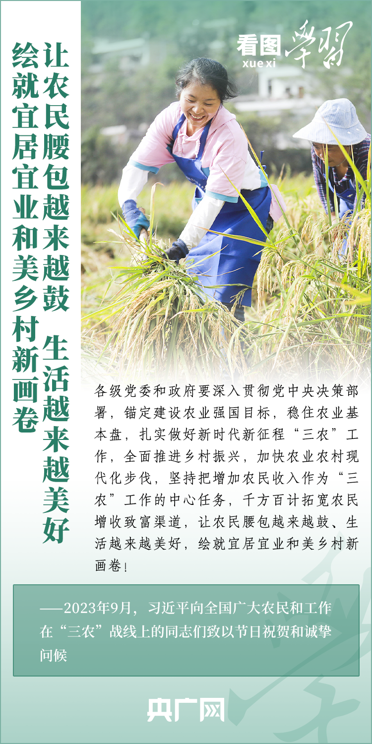 民族要復(fù)興,鄉(xiāng)村必振興。黨的十八大以來,每到各地考察調(diào)研,習(xí)近平總書記總會去農(nóng)村看一看,走進(jìn)田間地頭,和農(nóng)民拉拉家常。總書記強(qiáng)調(diào),“建設(shè)宜居宜業(yè)和美鄉(xiāng)村是農(nóng)業(yè)強(qiáng)國的應(yīng)有之義”,“要讓農(nóng)民腰包越來越鼓、生活越來越美好”。
