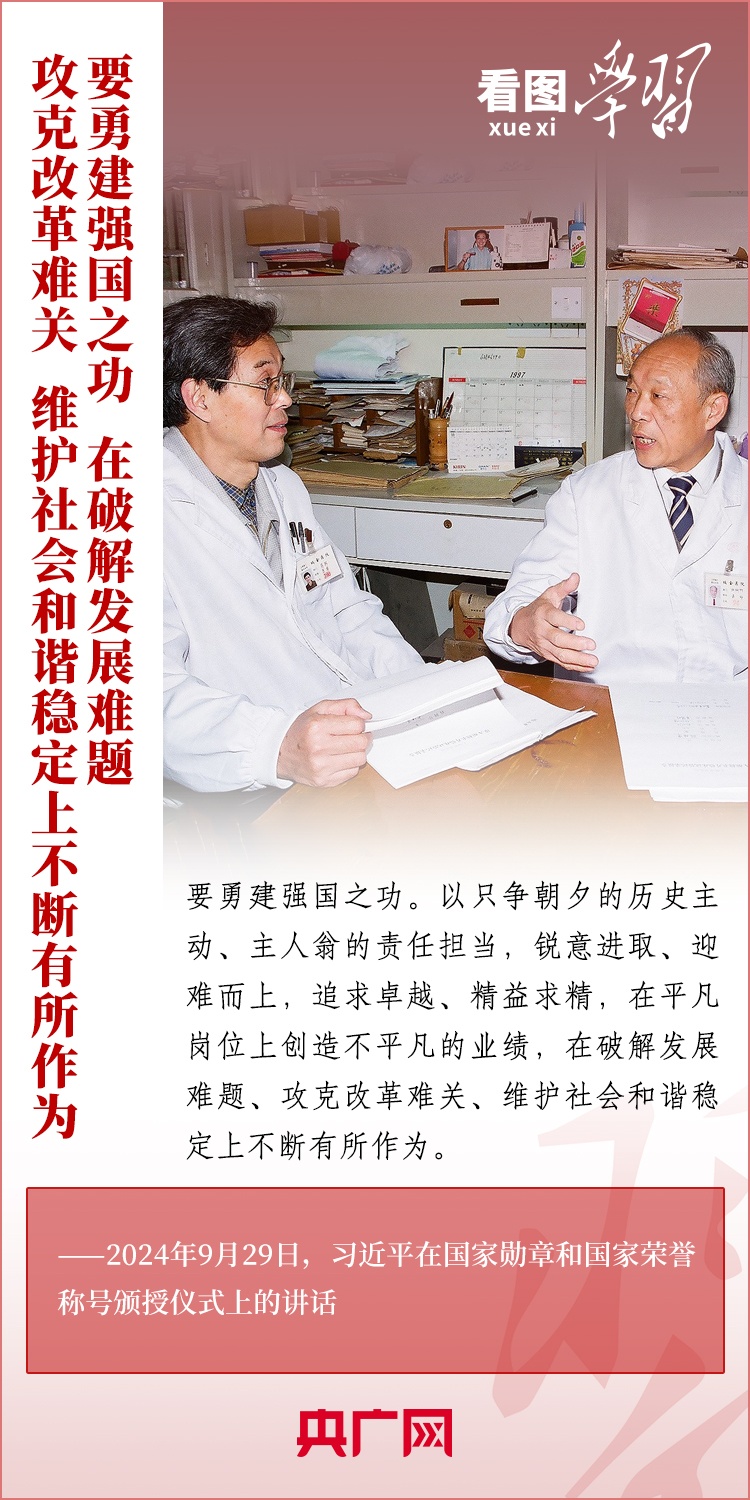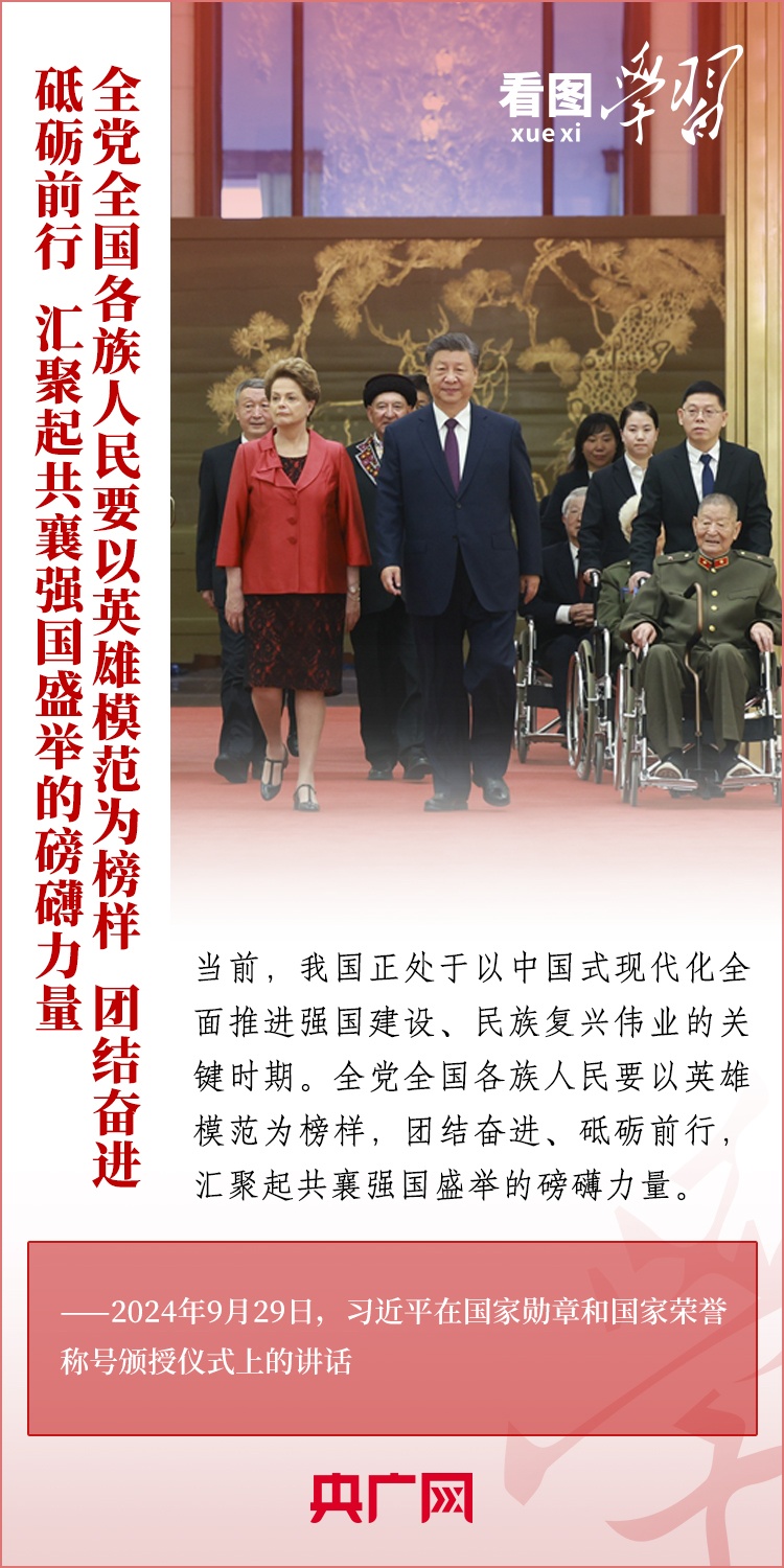 9月29日,中華人民共和國(guó)國(guó)家勛章和國(guó)家榮譽(yù)稱號(hào)頒授儀式在北京舉行,習(xí)近平總書(shū)記向國(guó)家勛章和國(guó)家榮譽(yù)稱號(hào)獲得者頒授勛章獎(jiǎng)?wù)虏l(fā)表重要講話??倳?shū)記強(qiáng)調(diào),全黨全國(guó)各族人民要以英雄模范為榜樣,團(tuán)結(jié)奮進(jìn)、砥礪前行,匯聚起共襄強(qiáng)國(guó)盛舉的磅礴力量。一起來(lái)學(xué)習(xí)!