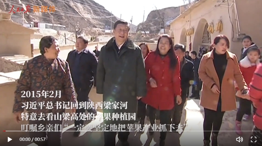 2015年2月,總書記回到陜西梁家河,特意去看山梁高處的蘋果種植園,叮囑鄉(xiāng)親們,“一定要堅定地把蘋果產(chǎn)業(yè)抓下去。”此時,聲勢浩大的脫貧攻堅正如火如荼。