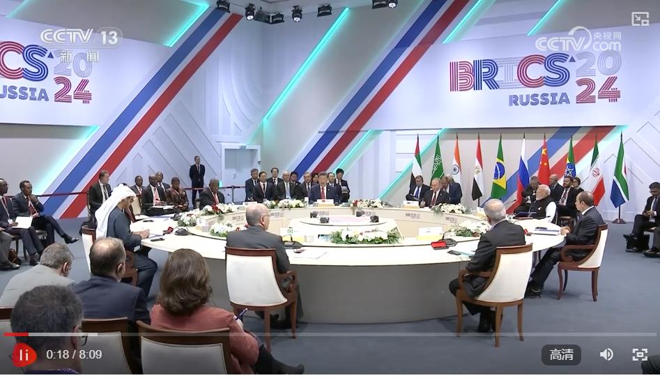 當地時間10月23日上午,金磚國家領導人第十六次會晤在喀山會展中心舉行。俄羅斯總統普京主持會晤。中國國家主席習近平、巴西總統盧拉(線上)、埃及總統塞西、埃塞俄比亞總理阿比、印度總理莫迪、伊朗總統佩澤希齊揚、南非總統拉馬福薩、阿聯酋總統穆罕默德等出席。