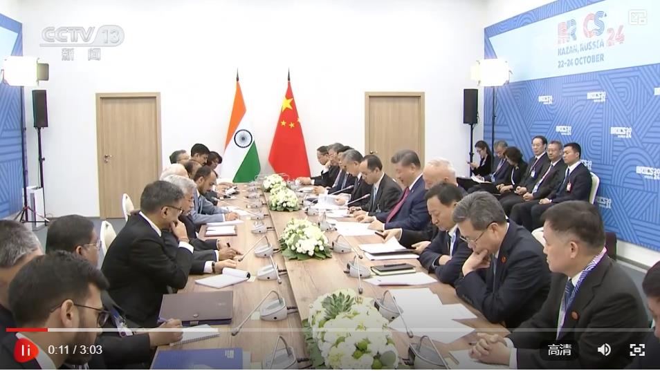 當(dāng)?shù)貢r(shí)間10月23日,國家主席習(xí)近平在喀山出席金磚國家領(lǐng)導(dǎo)人會(huì)晤期間會(huì)見印度總理莫迪。