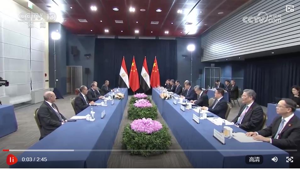 習(xí)近平祝賀并歡迎埃及首次作為正式成員參加金磚國(guó)家領(lǐng)導(dǎo)人會(huì)晤。習(xí)近平指出,今年是“中?;锇槟辍焙蛢蓢?guó)建立全面戰(zhàn)略伙伴關(guān)系10周年。中方堅(jiān)定支持埃及維護(hù)國(guó)家主權(quán)、安全、發(fā)展利益,愿同埃方做守望相助的真誠(chéng)朋友、攜手發(fā)展的親密伙伴。雙方要繼續(xù)堅(jiān)定相互支持,鞏固政治互信,深化務(wù)實(shí)合作,高質(zhì)量共建“一帶一路”,密切人文交流,推動(dòng)雙邊關(guān)系朝著構(gòu)建面向新時(shí)代的中埃命運(yùn)共同體目標(biāo)持續(xù)邁進(jìn)。中方也愿同埃方加強(qiáng)協(xié)調(diào),推動(dòng)“大金磚合作”行穩(wěn)致遠(yuǎn),進(jìn)一步提升全球南方影響力和發(fā)言權(quán),維護(hù)發(fā)展中國(guó)家共同利益。