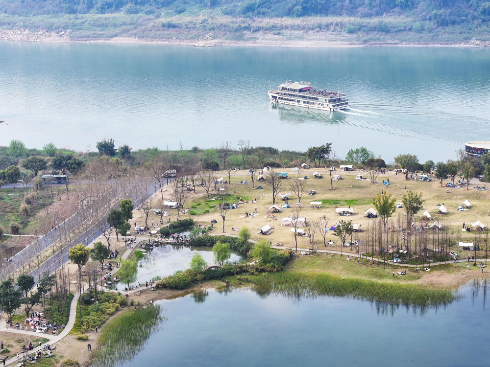 2024年3月16日,游客在重慶廣陽(yáng)島東島頭一帶游覽、休閑(無(wú)人機(jī)照片)。廣陽(yáng)島是長(zhǎng)江上游最大的江心島。近年來(lái),當(dāng)?shù)叵到y(tǒng)推進(jìn)自然恢復(fù)、生態(tài)修復(fù),豐富生物多樣性。2024年,重慶廣陽(yáng)島生態(tài)修復(fù)項(xiàng)目成功入選聯(lián)合國(guó)“生態(tài)恢復(fù)十年”優(yōu)秀案例。