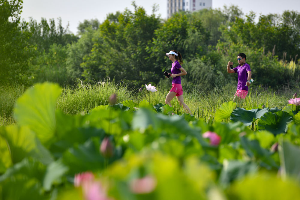 2024年6月23日,市民在陜西省漢中市天漢濕地公園內(nèi)運(yùn)動(dòng)休閑。漢江是長(zhǎng)江的最大支流,是南水北調(diào)中線工程的重要水源。近年來(lái),漢中市加強(qiáng)對(duì)漢江源頭和沿岸濕地生態(tài)保護(hù)修復(fù),構(gòu)建人水和諧共生的美麗城市,確?!耙汇逅览m(xù)北上”。