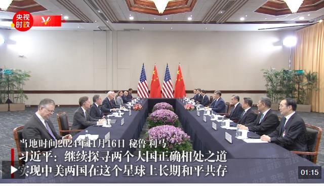 當?shù)貢r間11月16日下午,國家主席習(xí)近平在利馬同美國總統(tǒng)拜登舉行會晤。