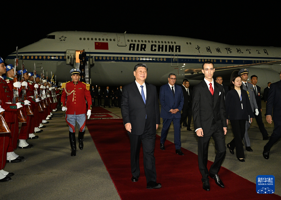 受摩洛哥國王穆罕默德六世指派,摩洛哥王儲哈桑、首相阿赫努什專程赴機場迎接習近平,并在機場舉行歡迎儀式。