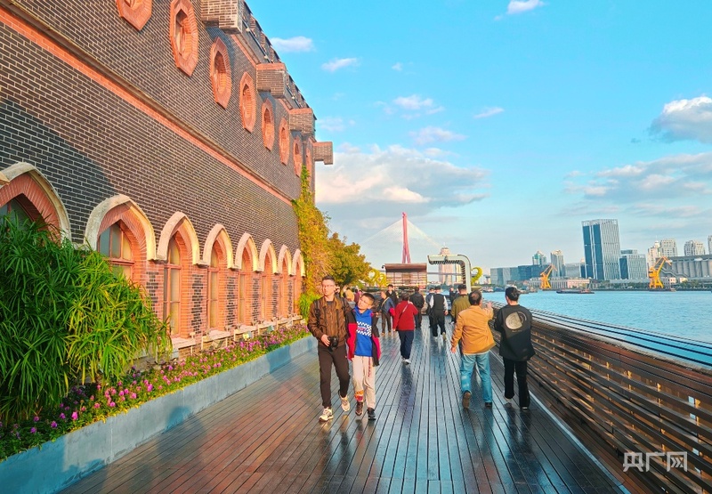 2024年11月,市民游客在上海楊浦濱江沿線漫步 (央廣網記者 馮麗 攝)