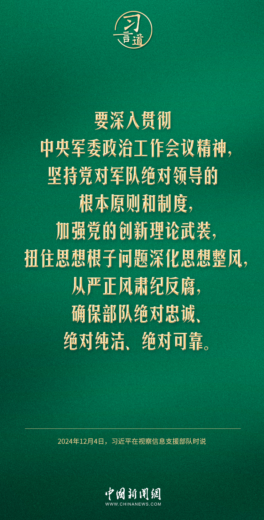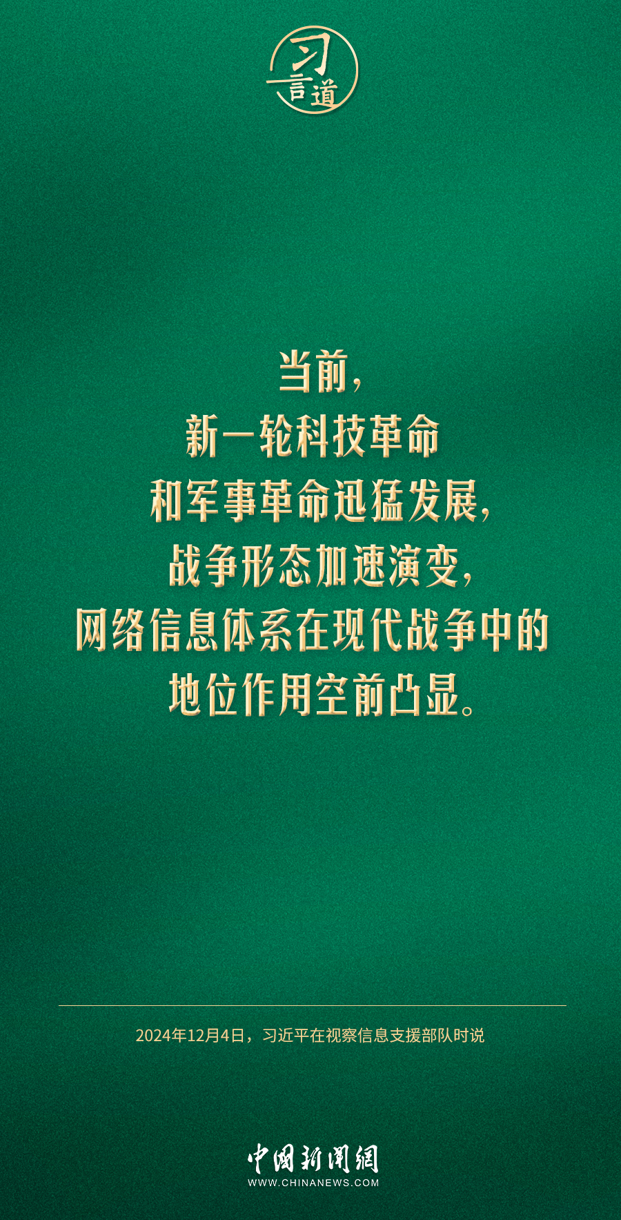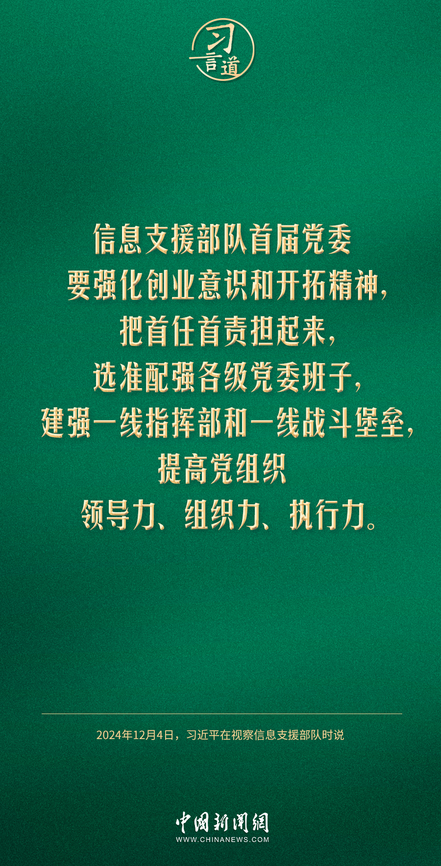 中共中央總書記、國(guó)家主席、中央軍委主席習(xí)近平4日視察信息支援部隊(duì),代表黨中央和中央軍委,對(duì)信息支援部隊(duì)第一次黨代表大會(huì)的召開(kāi)表示熱烈祝賀,向信息支援部隊(duì)全體官兵致以誠(chéng)摯問(wèn)候。習(xí)近平指出——