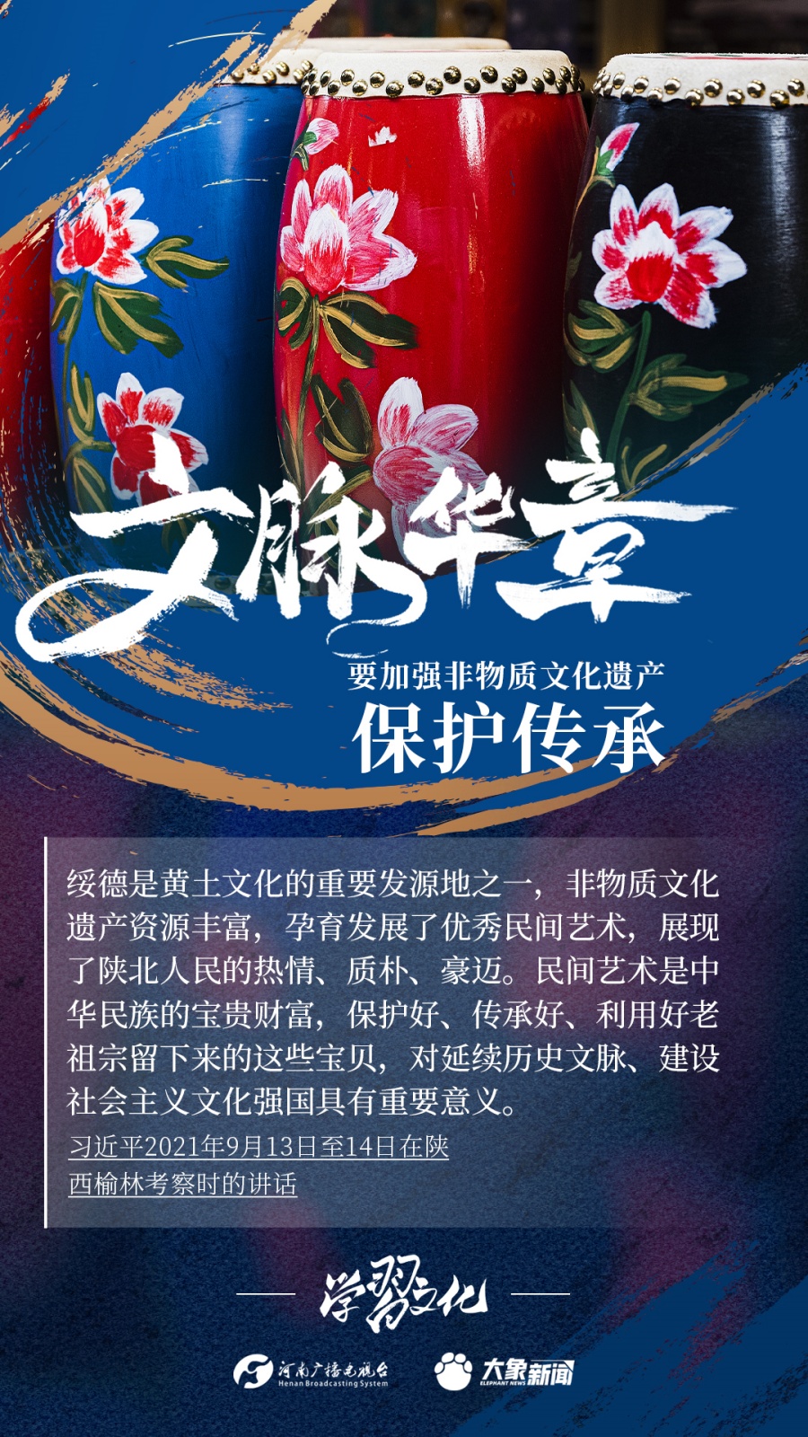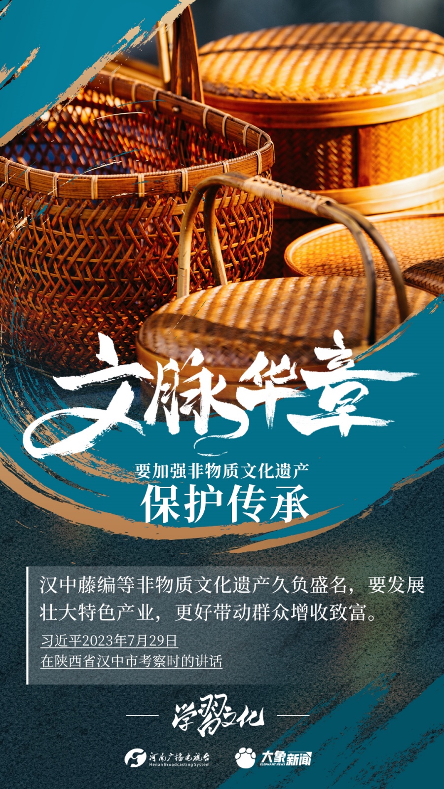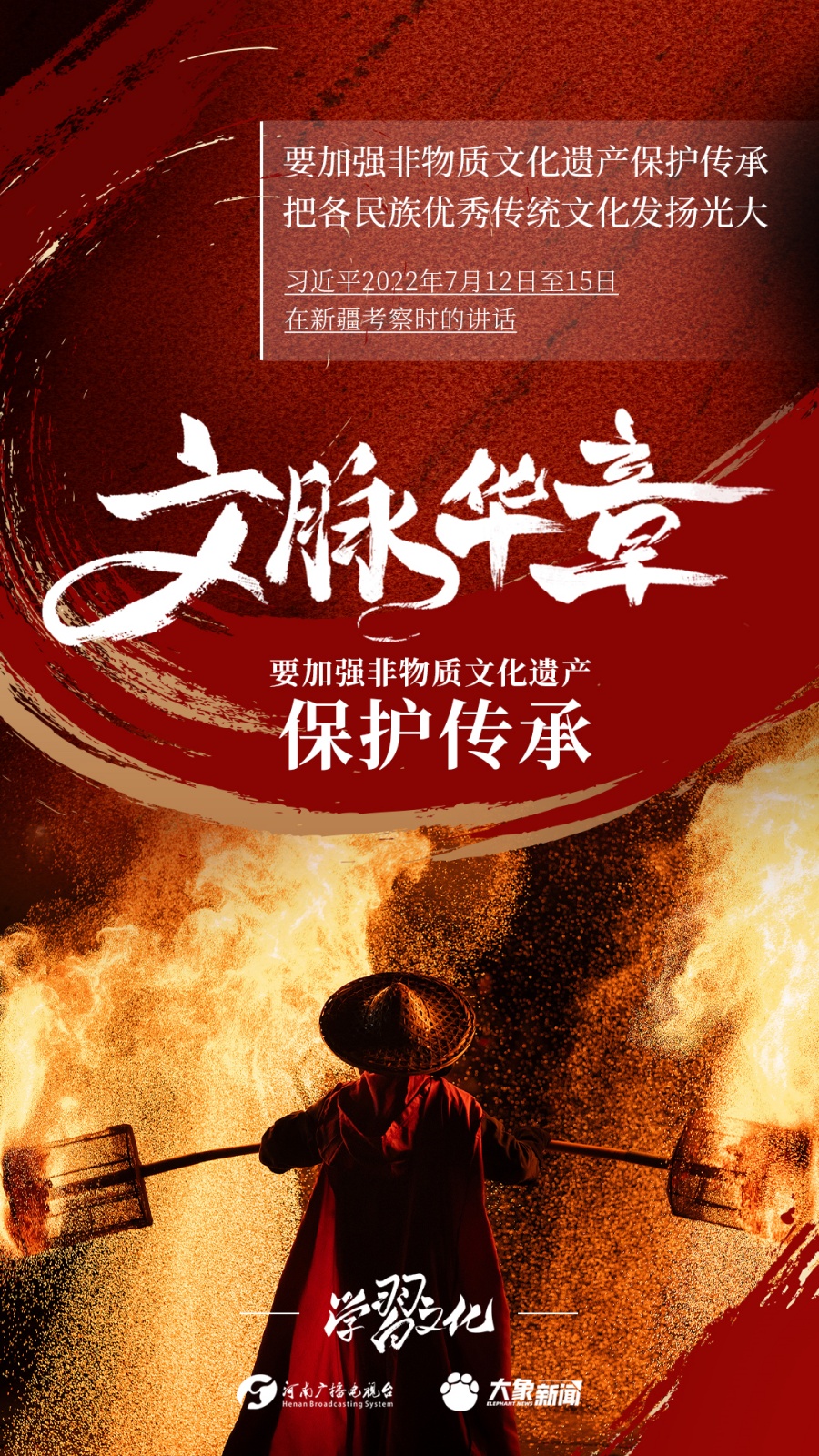 非物質(zhì)文化遺產(chǎn)是中華優(yōu)秀傳統(tǒng)文化的重要組成部分,是中華文明綿延傳承的生動(dòng)見(jiàn)證,是我國(guó)各族人民寶貴的精神財(cái)富。習(xí)近平總書記十分關(guān)心非物質(zhì)文化遺產(chǎn)的保護(hù)傳承,多次強(qiáng)調(diào)“要扎實(shí)做好非物質(zhì)文化遺產(chǎn)的系統(tǒng)性保護(hù)”“培養(yǎng)好傳承人”等。大象新聞為您梳理,邀您一起學(xué)習(xí)、領(lǐng)悟、踐行。
