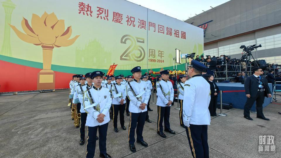 △澳門警察樂隊靜候習主席到來。(總臺央視記者段德文拍攝)