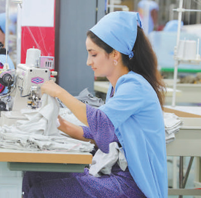 在中企投資的丹加拉農(nóng)業(yè)紡織產(chǎn)業(yè)園,當(dāng)?shù)毓と苏谶M行成衣縫紉。本報記者 胡澤曦攝