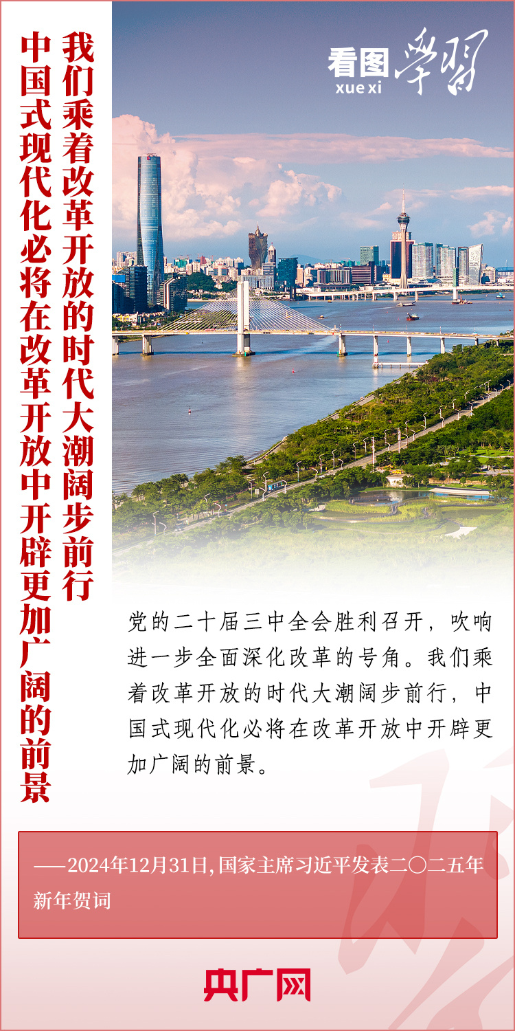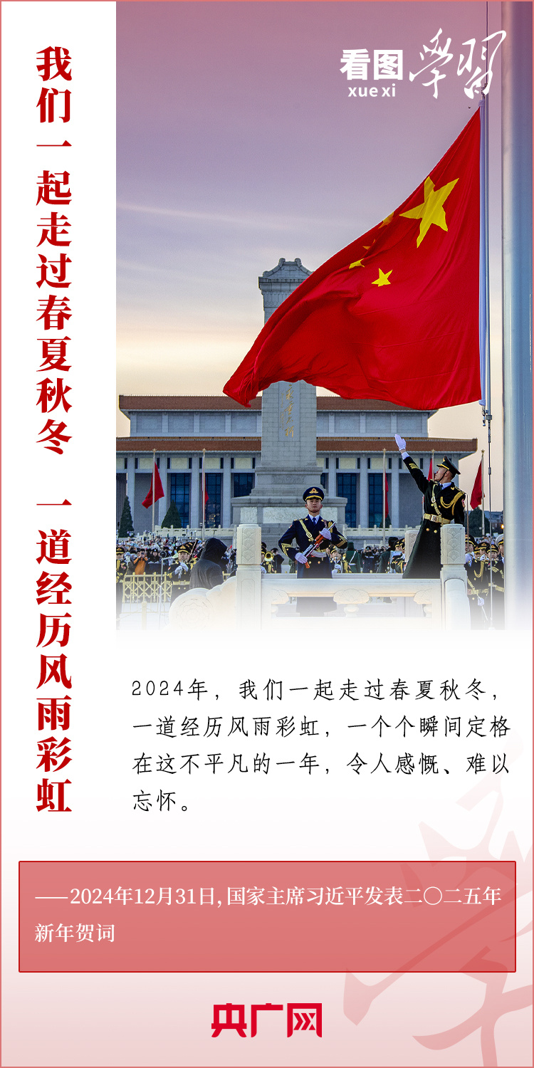 “夢雖遙,追則能達;愿雖艱,持則可圓?!毙履昵跋?,習近平主席發(fā)表二〇二五年新年賀詞。在溫暖有力的講述中,習主席深情回望過去一年中國不平凡的奮斗歷程、精彩瞬間,感慨大家一道經(jīng)歷的風雨彩虹、難忘時刻,贊美無數(shù)為夢想拼搏的勞動者、建設者、創(chuàng)業(yè)者。習主席說,中國式現(xiàn)代化的新征程上,每一個人都是主角,每一份付出都彌足珍貴,每一束光芒都熠熠生輝。讓我們充滿信心,在新的一年接續(xù)奮斗!