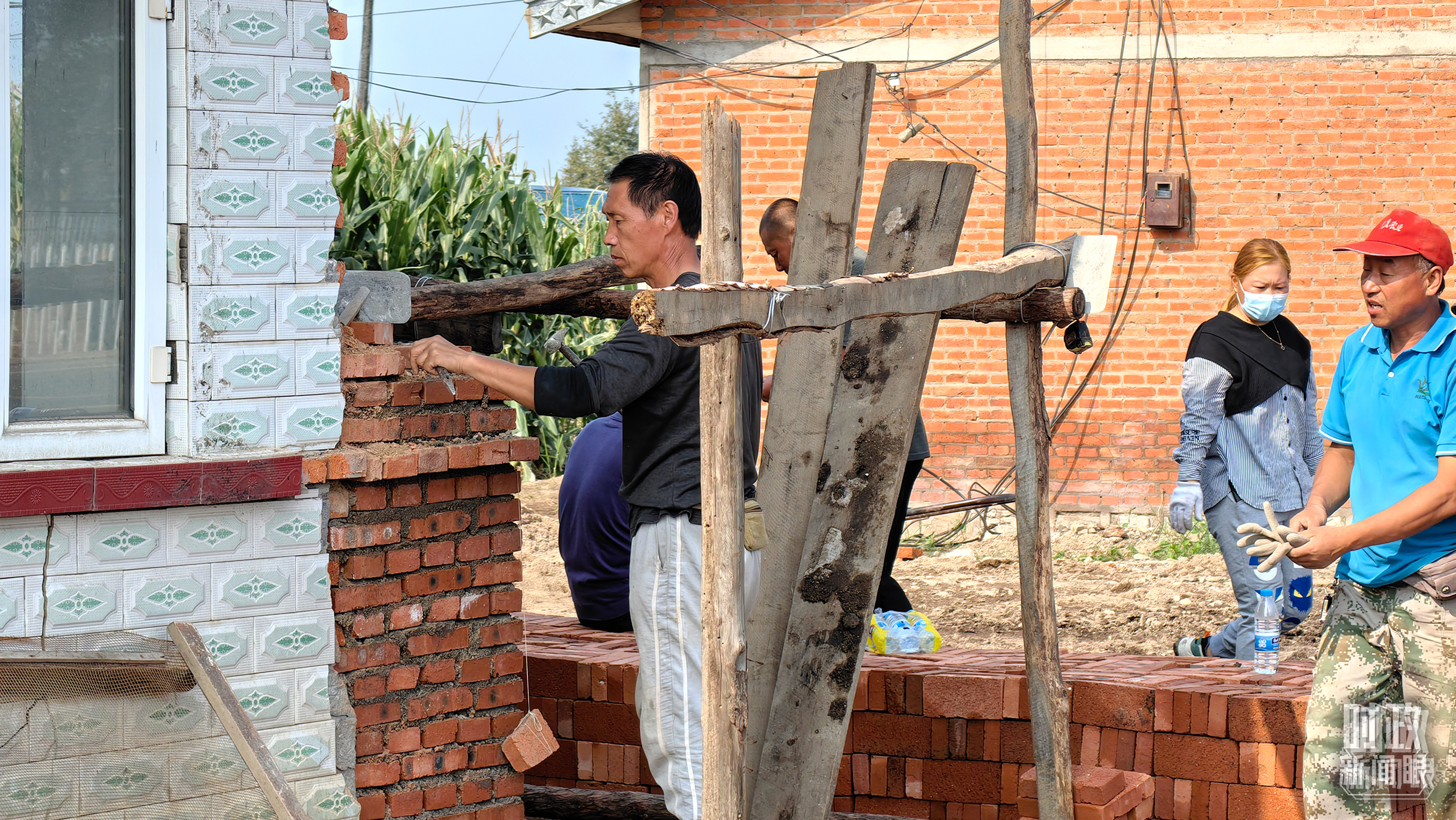 2023年9月,黑龍江龍王廟村村民在修繕在洪水中受損的房屋。(總臺央廣記者潘毅拍攝)