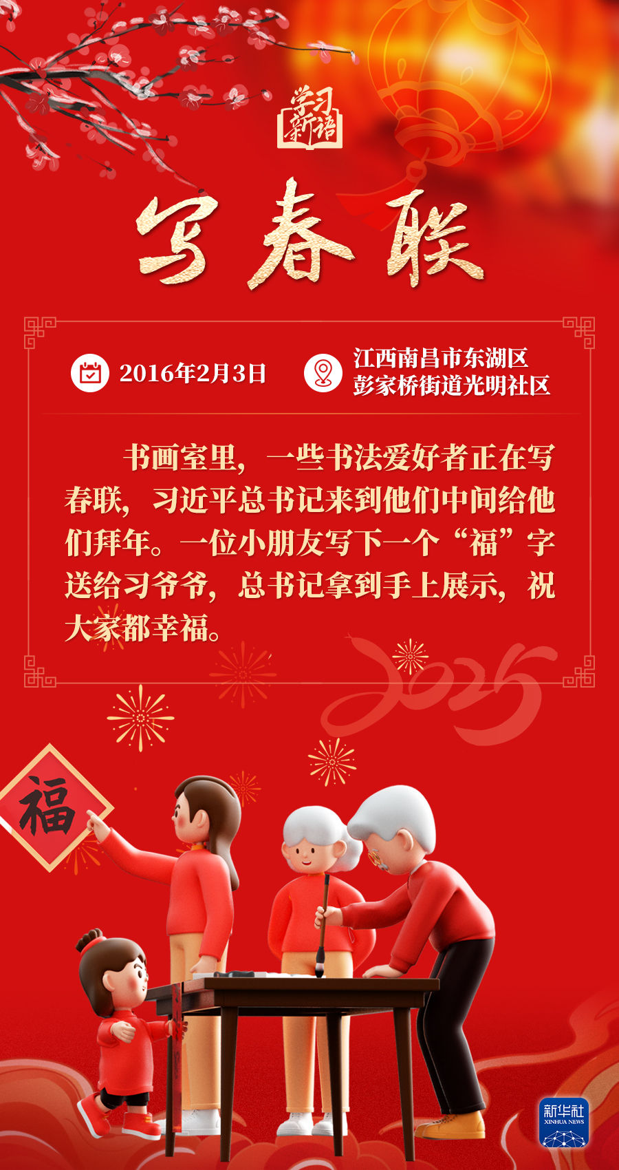 春節(jié)是中華民族的傳統(tǒng)節(jié)日。每當(dāng)春節(jié)來臨之際,習(xí)近平總書記都會走到群眾之中,送祝福、貼“?!弊帧①p民俗……和大家一起感受豐富多彩的年俗文化。