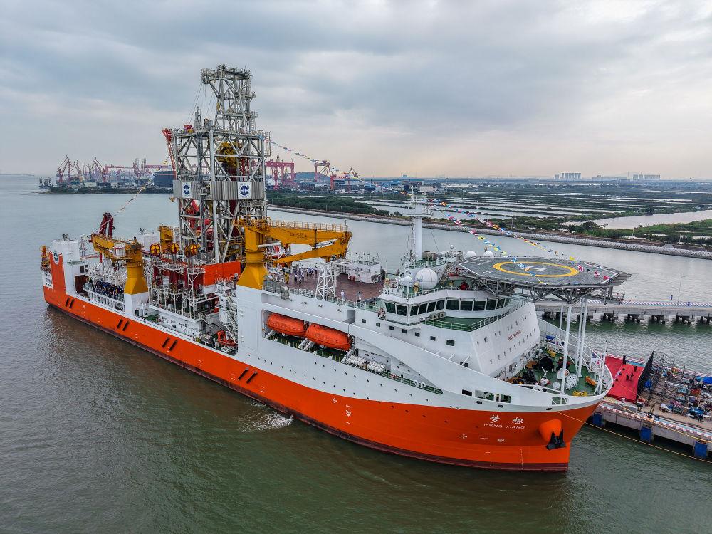 △2024年11月17日,靠泊在廣州海洋地質(zhì)調(diào)查局科考碼頭的我國自主設計建造的首艘大洋鉆探船夢想號。