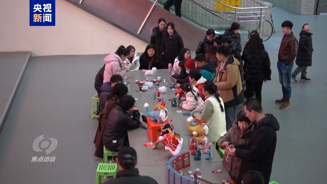 專家在進行專業(yè)的修復,觀眾的新春體驗活動也已經(jīng)開始。