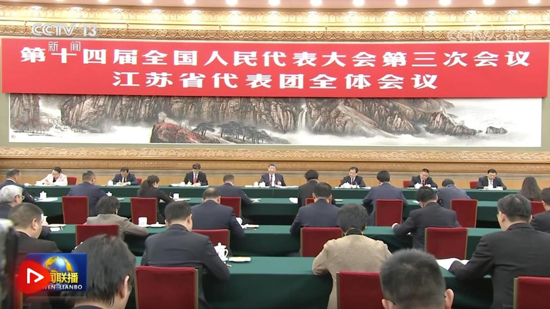 在聽取大家發(fā)言后,習近平作了發(fā)言。他首先表示贊成政府工作報告,對江蘇工作予以肯定,希望江蘇落實好挑大梁的責任,努力取得新的更大成績。