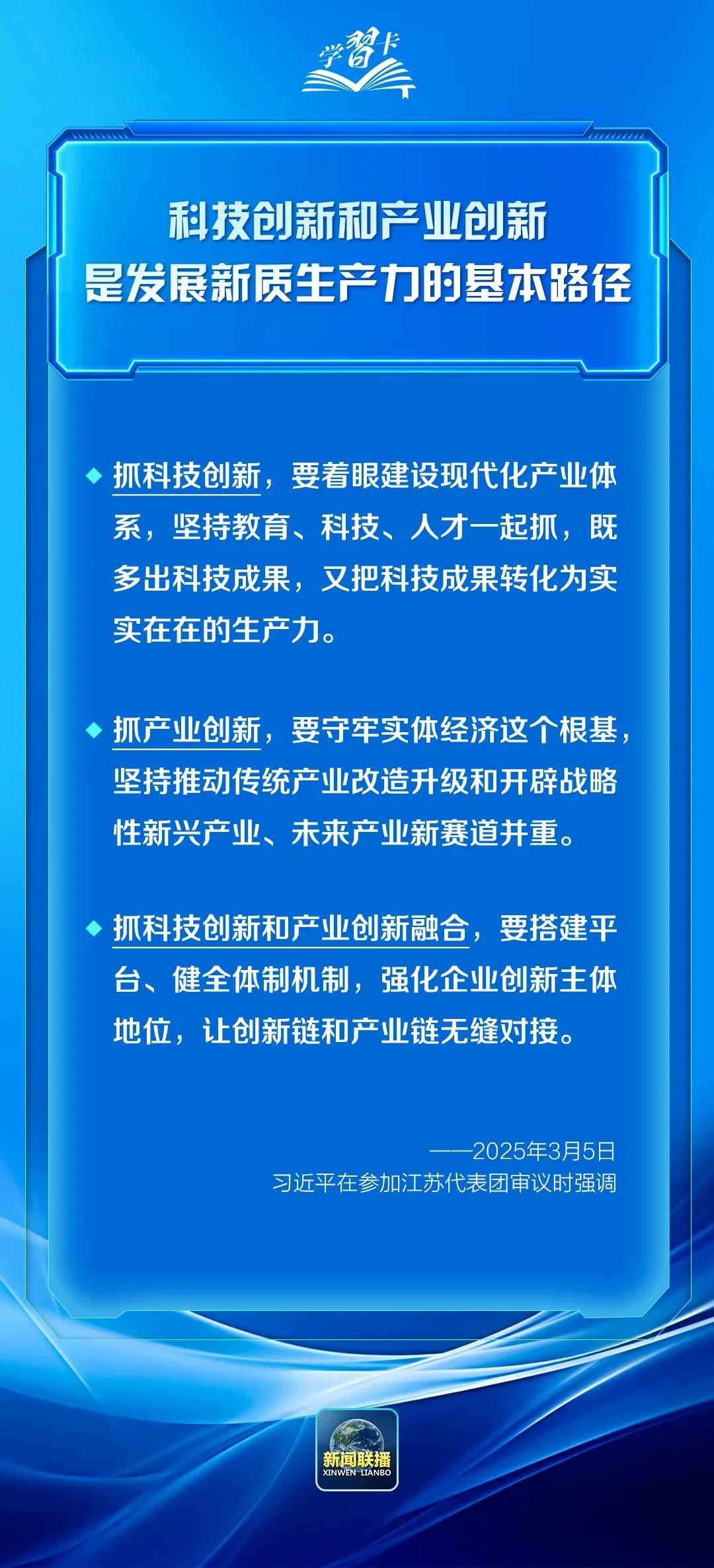 2025年全國兩會(huì)期間,習(xí)近平總書記參加團(tuán)組審議討論時(shí),多次提到科技創(chuàng)新這一關(guān)鍵命題,強(qiáng)調(diào)“科技創(chuàng)新和產(chǎn)業(yè)創(chuàng)新,是發(fā)展新質(zhì)生產(chǎn)力的基本路徑”。一起學(xué)習(xí)↓