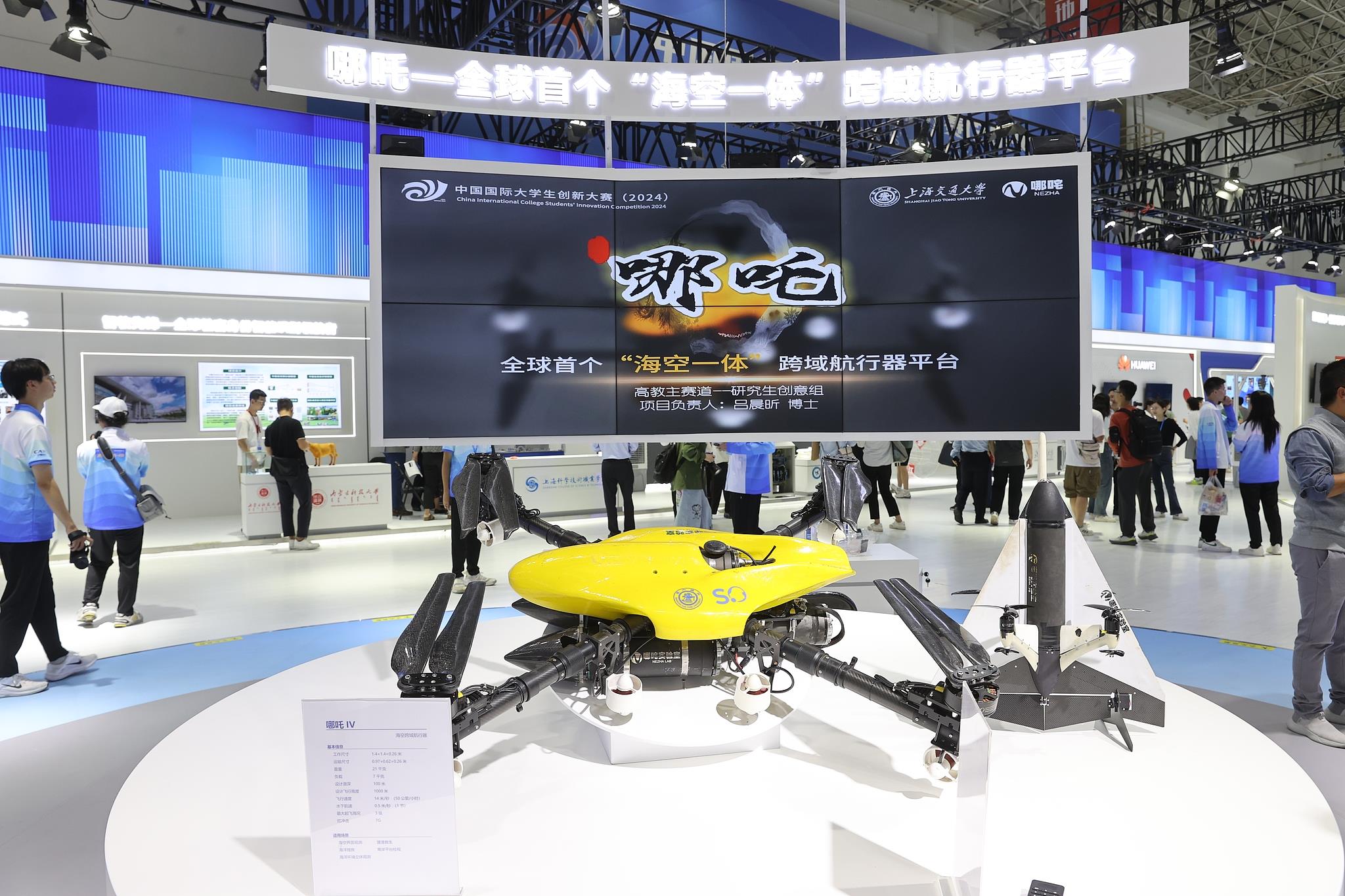 2024年10月12日至15日,中國國際大學(xué)生創(chuàng)新大賽總決賽及同期活動在上海舉行。來自上海交通大學(xué)的“哪吒——全球首個‘??找惑w’跨域航行器平臺”項目奪得冠軍。