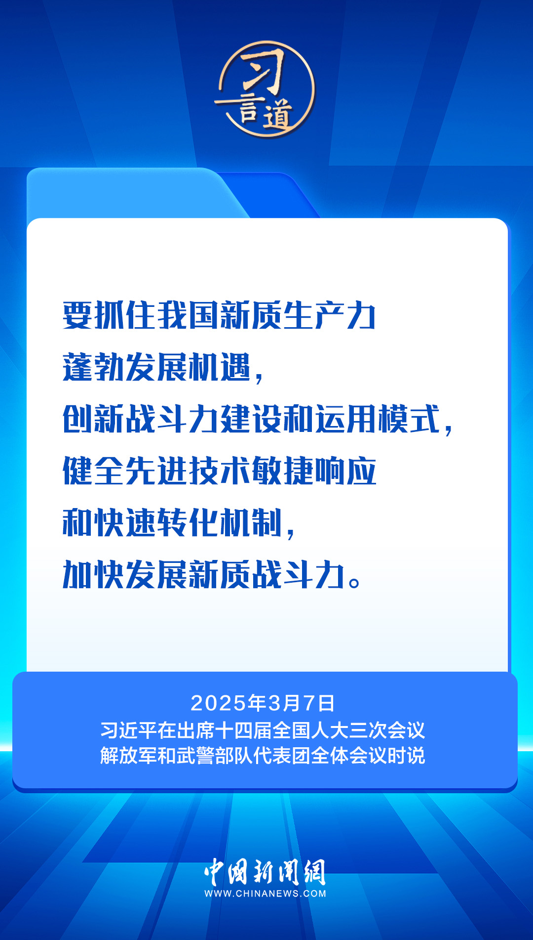 2013年到2025年的全國(guó)兩會(huì),中共中央總書記、國(guó)家主席、中央軍委主席習(xí)近平連續(xù)13年到解放軍代表團(tuán)、解放軍和武警部隊(duì)代表團(tuán),與全軍官兵代表們共商國(guó)是,謀劃國(guó)防和軍隊(duì)現(xiàn)代化建設(shè)。這些話語擲地有聲,為強(qiáng)軍建設(shè)指引奮進(jìn)方向——
