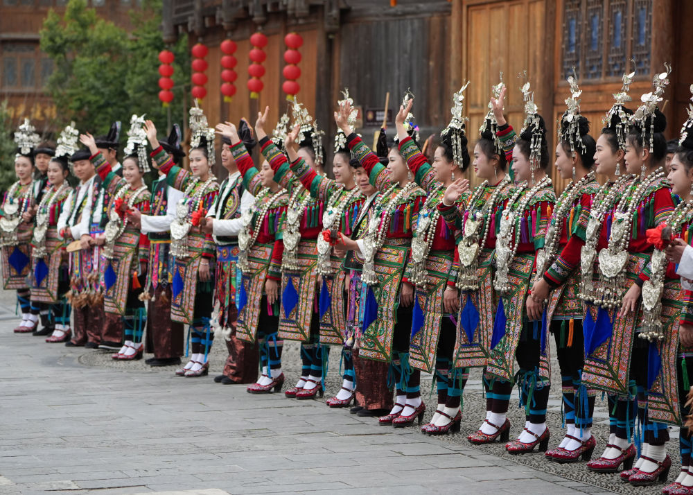 2025年3月14日,村民在肇興侗寨內(nèi)通過手機(jī)直播銷售刺繡作品。侗繡承載著侗族人的信仰與記憶,年輕繡娘的手藝多半來自母親傳承,侗族婦女用一針一線將民族古老的神話傳說、歷史風(fēng)俗記錄在服飾的紋樣里,讓這門手藝在侗鄉(xiāng)世代傳承。2011年,侗族刺繡被列入國(guó)家級(jí)非物質(zhì)文化遺產(chǎn)名錄。