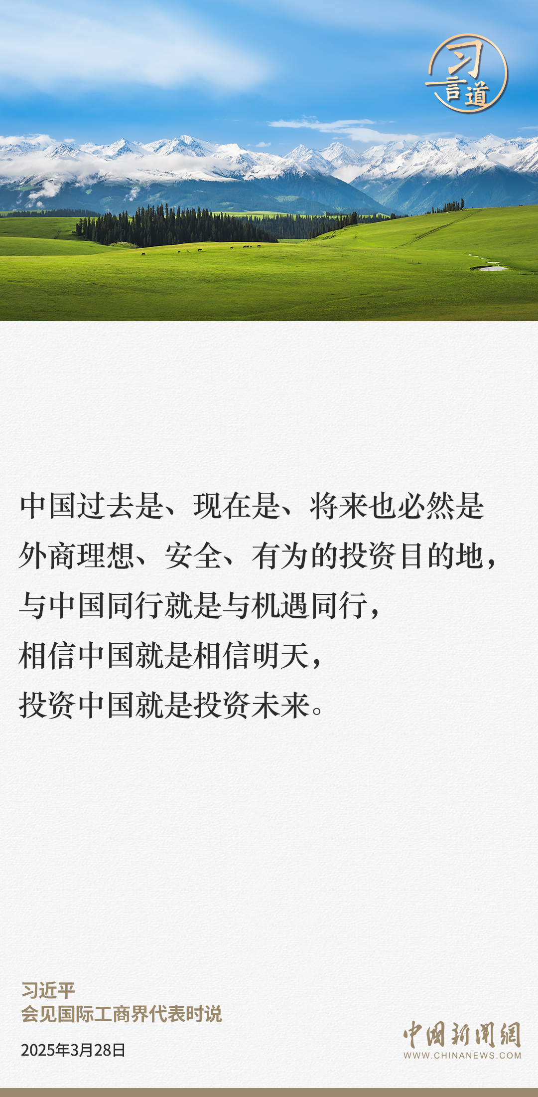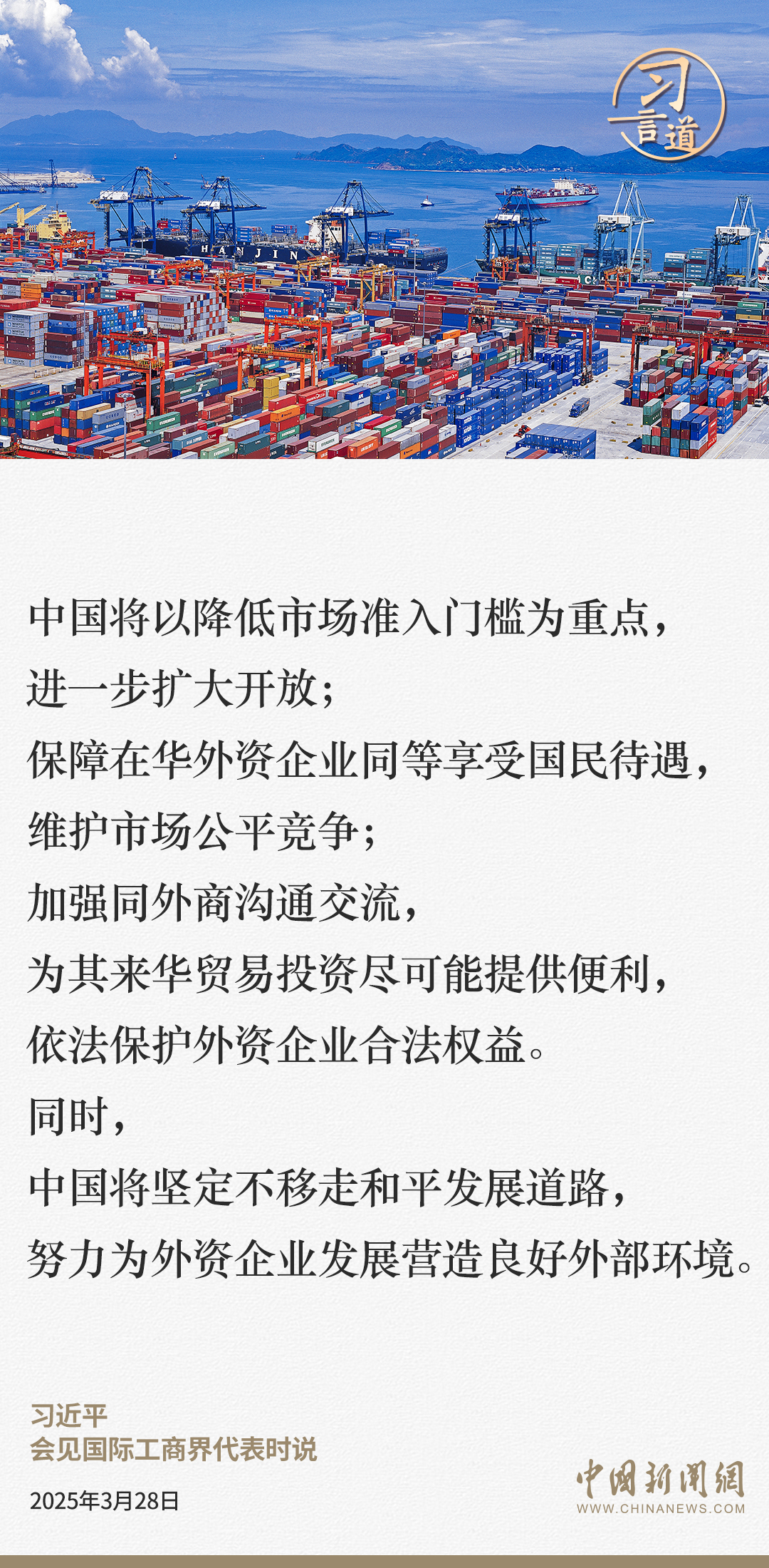 3月28日,國家主席習(xí)近平在北京人民大會(huì)堂會(huì)見國際工商界代表。習(xí)近平主席指出——