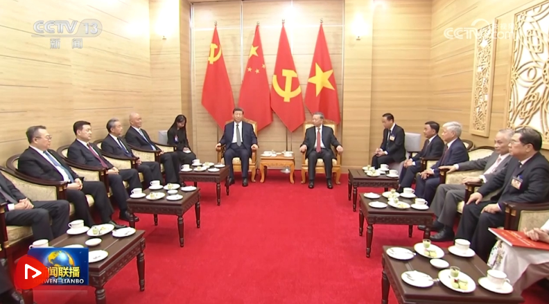 習(xí)近平指出,這次訪問時(shí)間雖短,但活動(dòng)豐富、成果豐碩。雙方重申共同壯大世界社會(huì)主義事業(yè)的政治意愿,都期待朝著“六個(gè)更”總體目標(biāo)全面推進(jìn)兩國戰(zhàn)略合作,都表示抵御外部風(fēng)險(xiǎn)挑戰(zhàn),維護(hù)地區(qū)和平穩(wěn)定和國際公平正義。我對中越關(guān)系發(fā)展前景充滿信心。雙方要全面落實(shí)這次訪問成果,持續(xù)推進(jìn)中越命運(yùn)共同體建設(shè)。