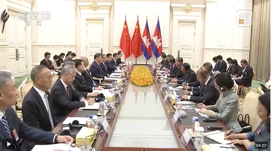 習近平指出,中柬兩國是友好鄰邦,更是鐵桿朋友。構建中柬命運共同體是歷史的選擇、人民的選擇。當前,中柬兩國都處在國家發(fā)展的關鍵階段,雙方要心系人民福祉,胸懷人類進步,在推進各自現(xiàn)代化進程中,為構建人類命運共同體樹立典范,攜手做世界百年變局中的和平力量、穩(wěn)定力量、進步力量。