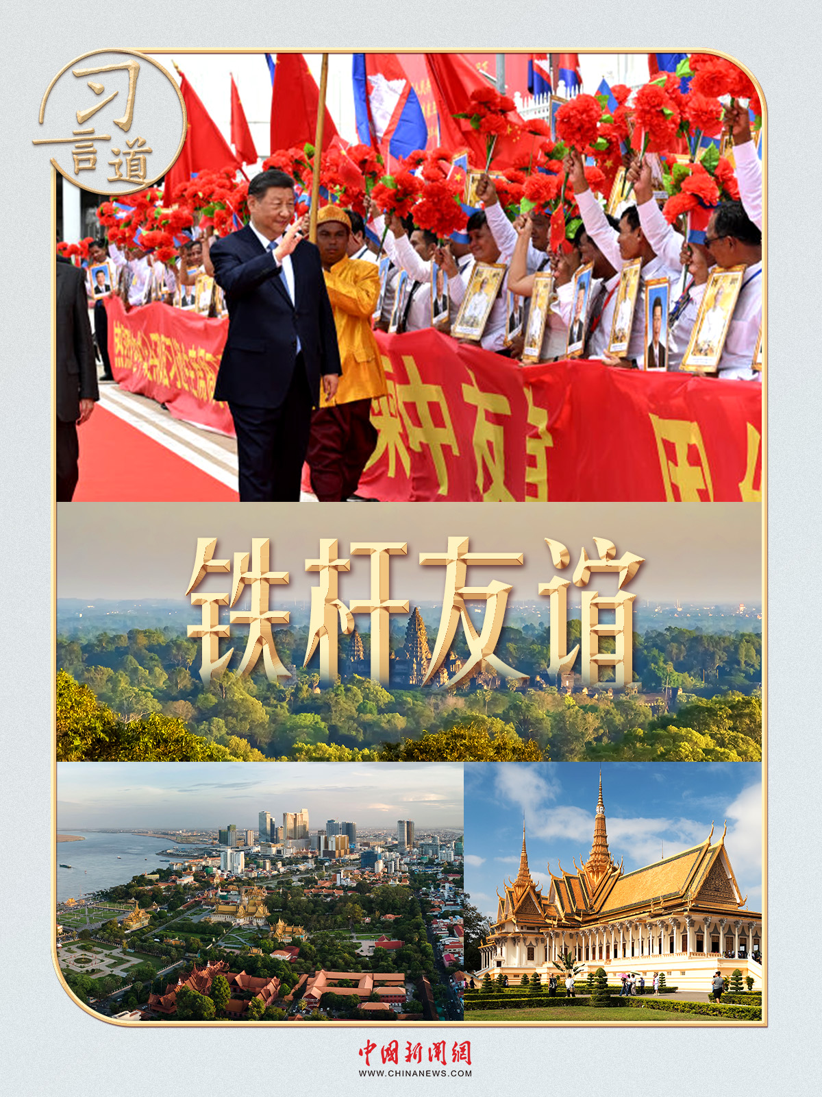 今次訪問柬埔寨,習近平主席表示,“我堅信,在雙方共同努力下,歷經(jīng)歲月洗禮和風雨考驗的中柬鐵桿友誼一定會初心如磐、成色十足?!?/p>