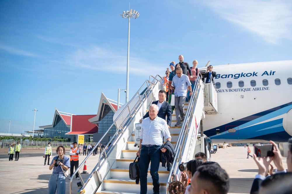 2023年10月16日,由中國企業(yè)在海外以“BOT模式(建設(shè)-運營-移交)”建設(shè)的柬埔寨暹粒吳哥國際機場通航運營。這是該機場首架進港客機乘客走下飛機。