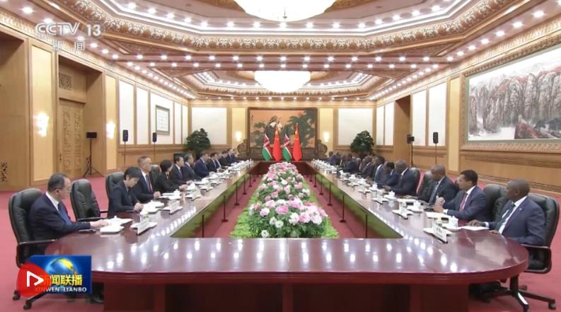 4月24日上午,國(guó)家主席習(xí)近平在北京人民大會(huì)堂同來華進(jìn)行國(guó)事訪問的肯尼亞總統(tǒng)魯托舉行會(huì)談。兩國(guó)元首一致同意將雙邊關(guān)系定位提升至新時(shí)代中肯命運(yùn)共同體。