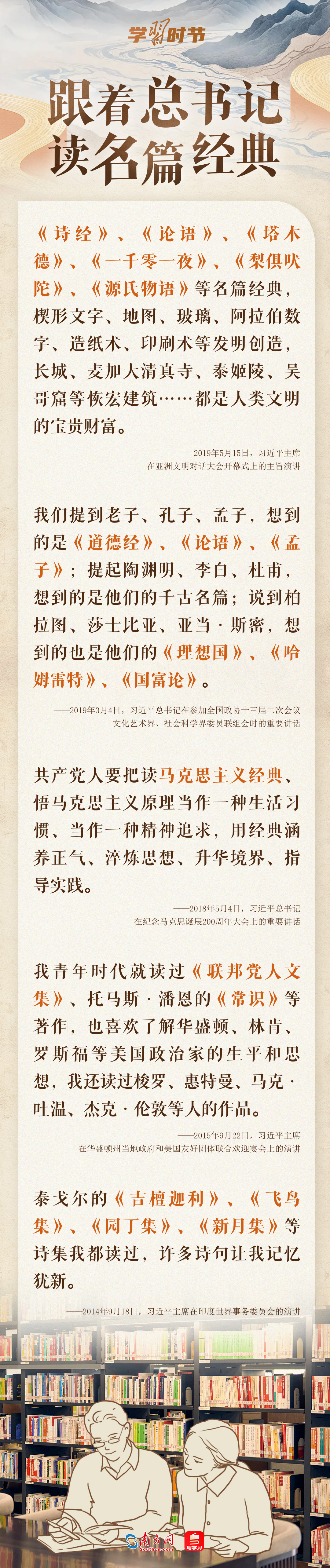 書籍是人類知識的載體,是人類智慧的結(jié)晶,是人類進步的階梯。習近平總書記酷愛讀書,多次講述和書籍的不解之緣,分享讀書感悟。他說:“我愛好挺多,最大的愛好是讀書,讀書已成為我的一種生活方式。”
