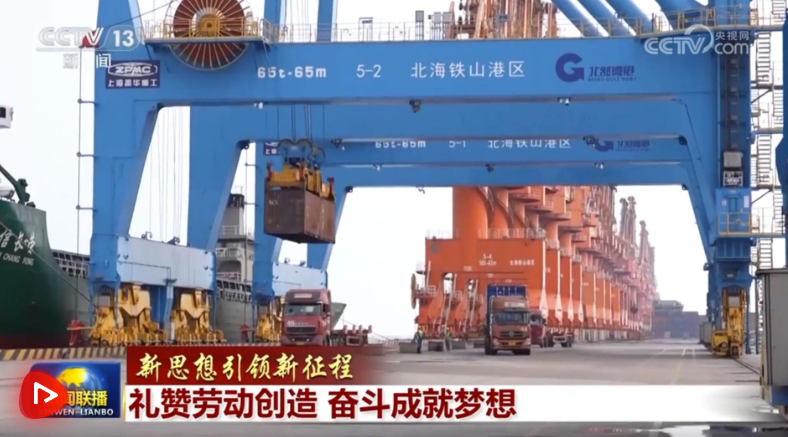 在廣西北海,鐵山港岸橋林立,貨輪有序裝卸,貨車(chē)往來(lái)穿梭,來(lái)自世界各地的貨物在這里高效暢通中轉(zhuǎn)。