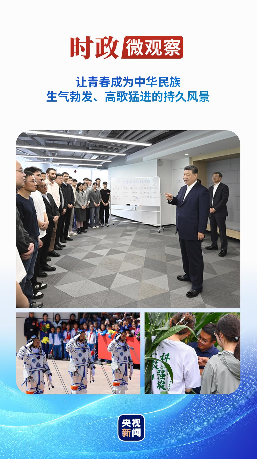 今年五四青年節(jié)前,習(xí)近平總書記再次來到年輕人中間。4月29日,在上?!澳K倏臻g”大模型創(chuàng)新生態(tài)社區(qū),總書記同青年創(chuàng)新人才親切交流,勉勵大家“把個人奮斗同國家前途命運緊緊聯(lián)系在一起,跑好歷史的接力棒,在推進中國式現(xiàn)代化的寬廣舞臺上綻放絢麗的青春光彩”。