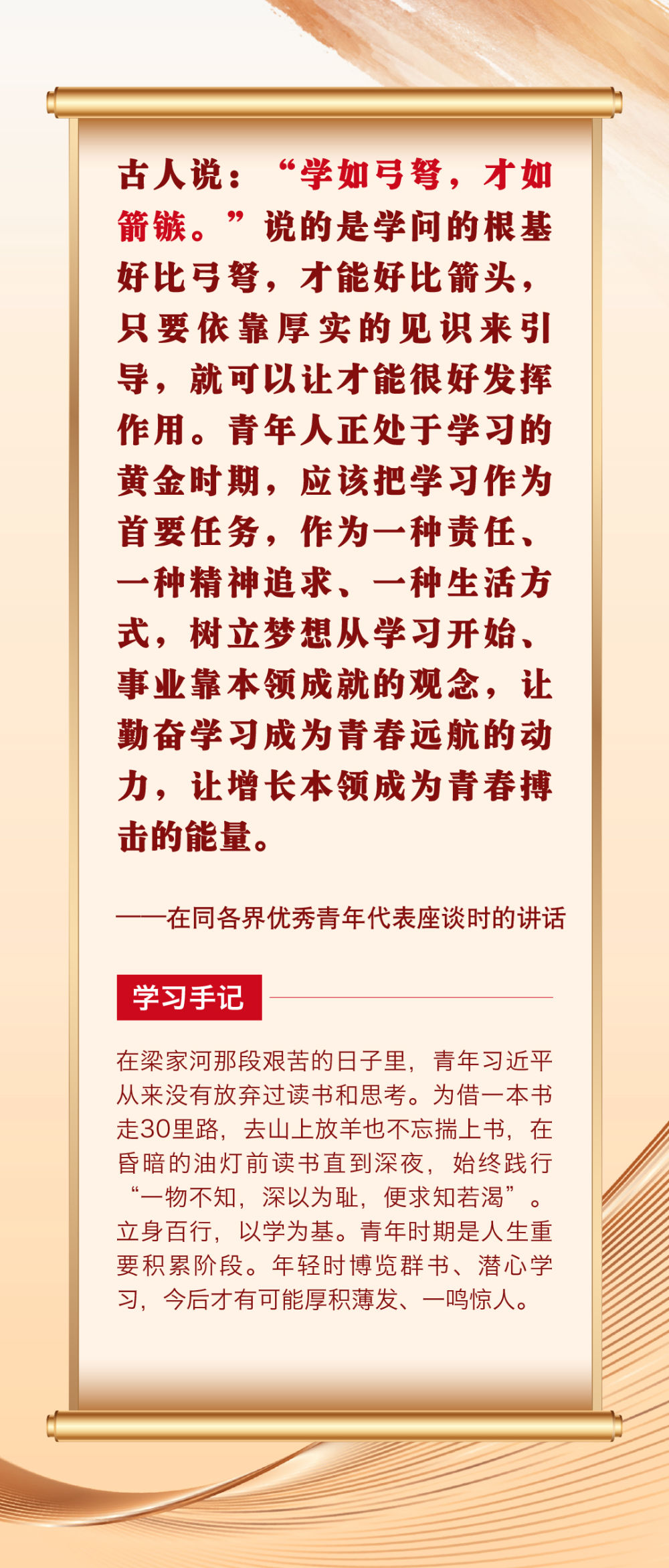 “青年者,國(guó)家之魂。”青年一代以何種精神風(fēng)貌站上時(shí)代舞臺(tái),關(guān)乎祖國(guó)的明天、民族的未來。黨的十八大以來,習(xí)近平總書記圍繞青年成長(zhǎng)成才作出許多重要論述。其中,有信手拈來的精妙典故,有貫古通今的廣征博引,引領(lǐng)廣大青年不斷在中華文化的浸潤(rùn)中堅(jiān)定中國(guó)心、涵養(yǎng)民族魂,成長(zhǎng)為堪當(dāng)復(fù)興重任的時(shí)代新人。