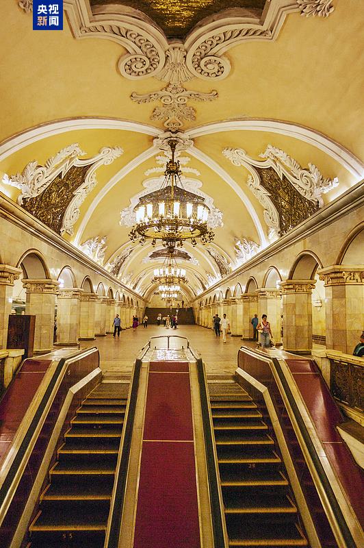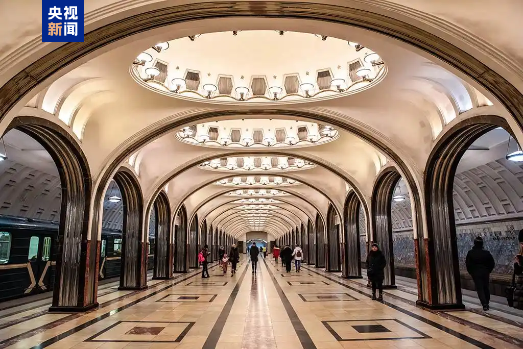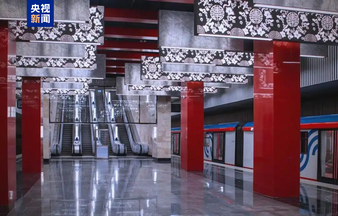 △莫斯科地鐵米丘林大街站由中企中標(biāo)建設(shè),地鐵站有紅色立柱、團(tuán)壽紋、祥云等中國元素裝飾。