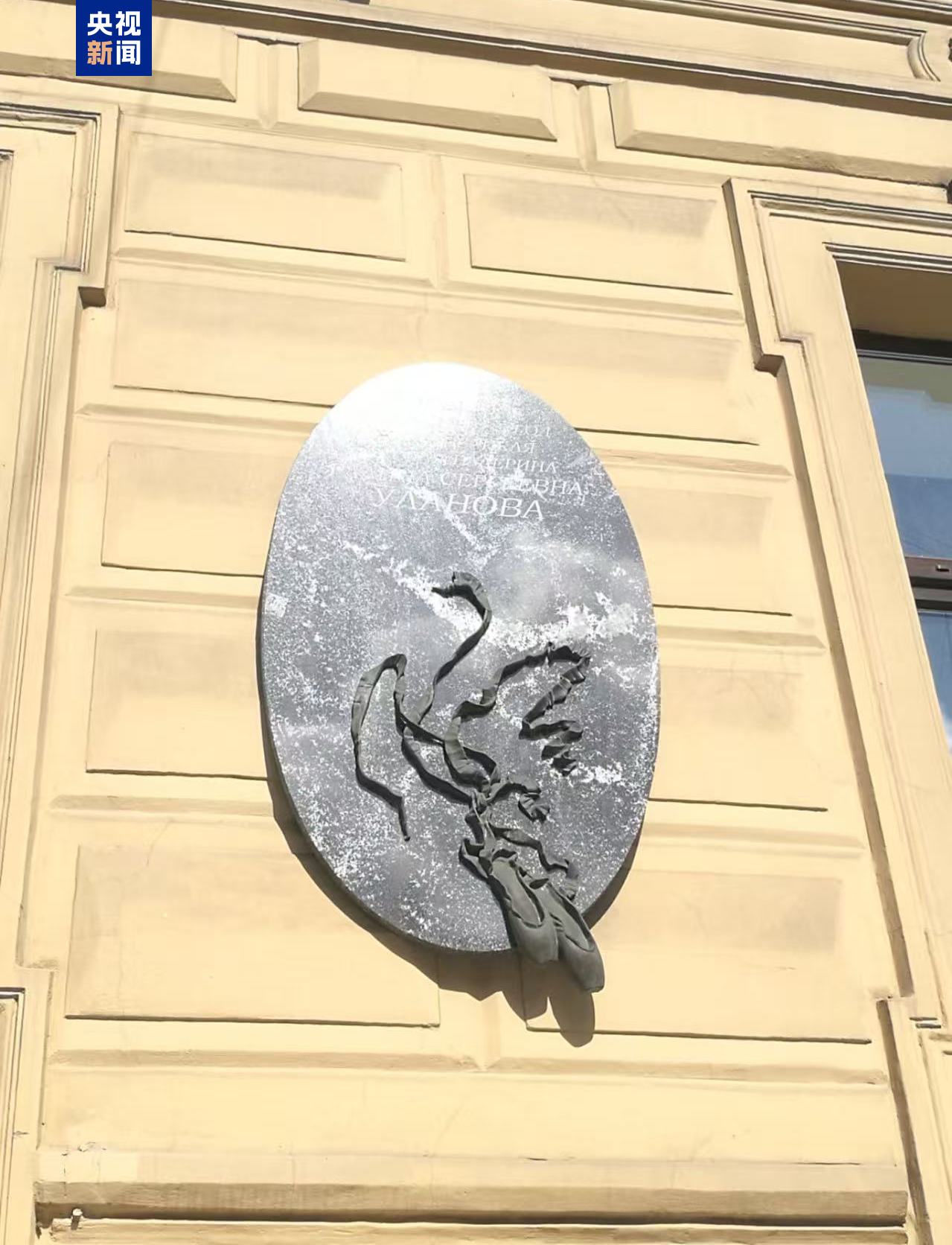 △俄羅斯著名芭蕾舞女演員加林娜·烏蘭諾娃在圣彼得堡曾經(jīng)的住所外,懸掛有芭蕾舞鞋的雕塑。
