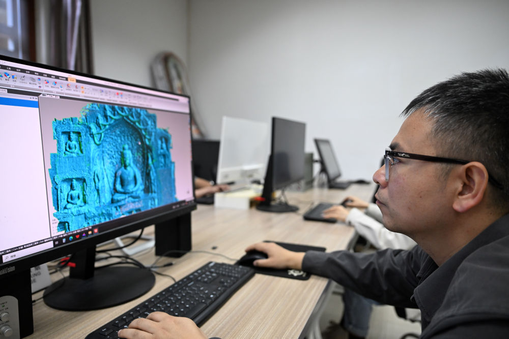 2025年4月10日,龍門(mén)石窟研究院工作人員進(jìn)行3D建模工作。