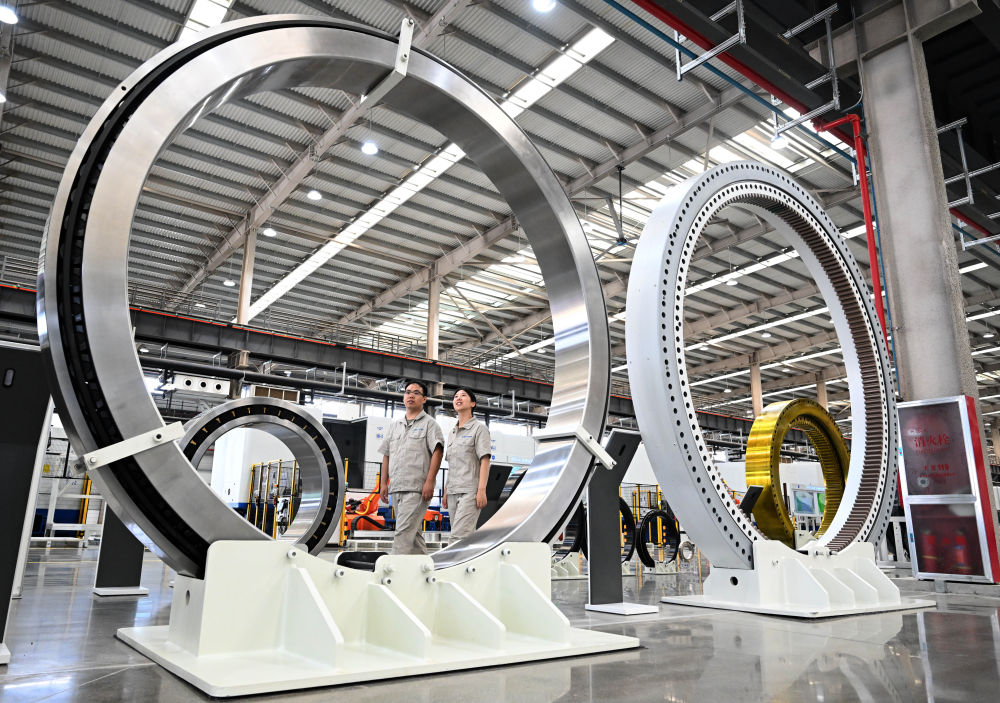 那是一款風(fēng)力發(fā)電主軸承,每轉(zhuǎn)動(dòng)一圈可發(fā)電超34千瓦時(shí)。