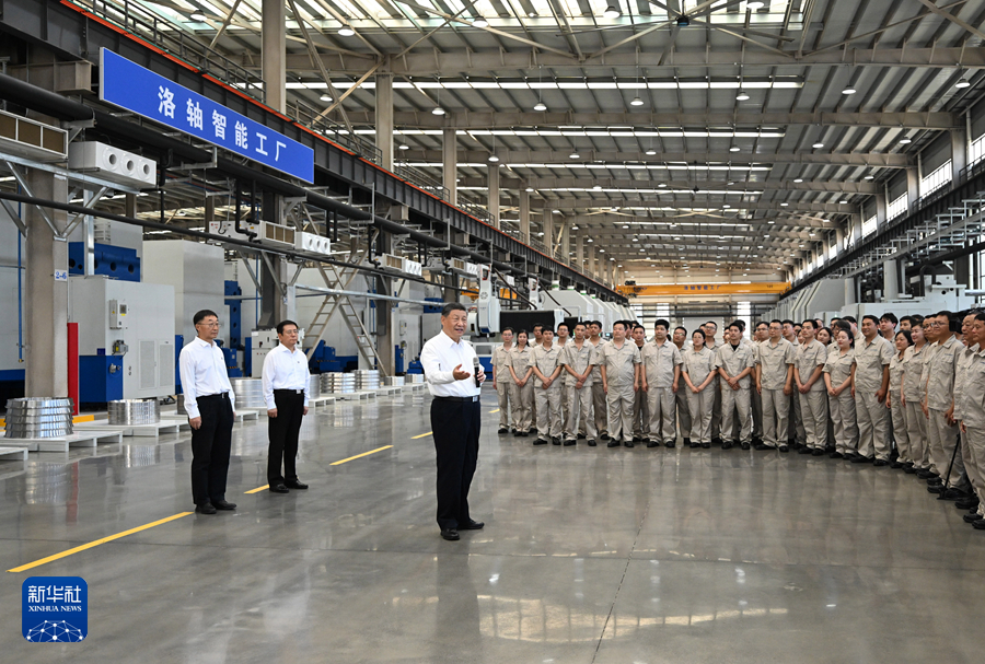 5月19日至20日,中共中央總書記、國(guó)家主席、中央軍委主席習(xí)近平在河南考察。這是19日下午,習(xí)近平在洛陽(yáng)軸承集團(tuán)股份有限公司智能工廠考察。新華社記者 謝環(huán)馳 攝