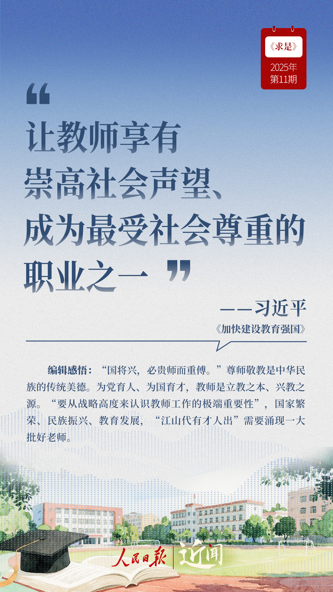 教育是國之大計、黨之大計。日前,《求是》雜志發(fā)表習(xí)近平總書記重要文章《加快建設(shè)教育強(qiáng)國》?!叭姘盐战逃恼螌傩浴⑷嗣駥傩?、戰(zhàn)略屬性”“讓教育改革發(fā)展成果更多更公平惠及全體人民”“讓教師享有崇高社會聲望、成為最受社會尊重的職業(yè)之一”……通過這些話,一起感悟習(xí)近平總書記對教育強(qiáng)國建設(shè)的謀劃與部署。