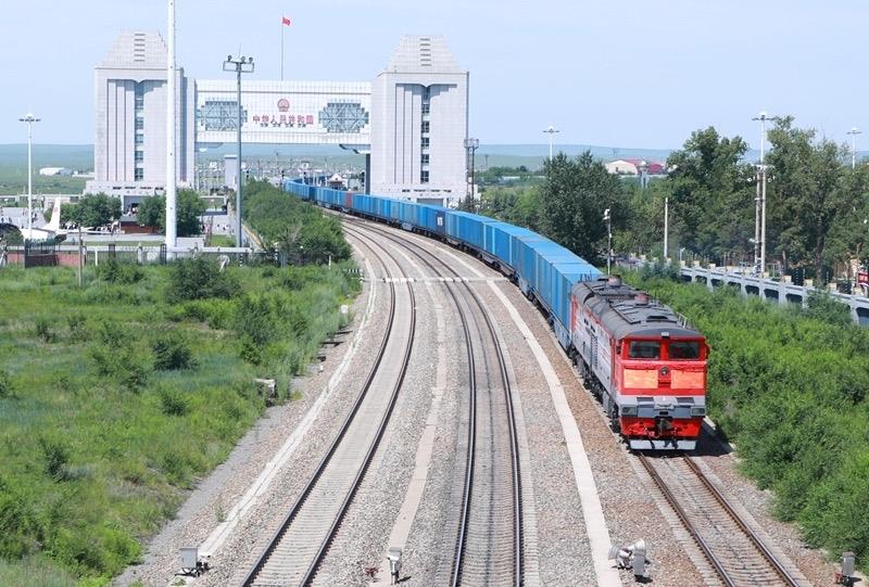 2025年7月24日,一列滿載貨物的回程中歐班列通過國門駛入中國鐵路哈爾濱局集團有限公司滿洲里站。