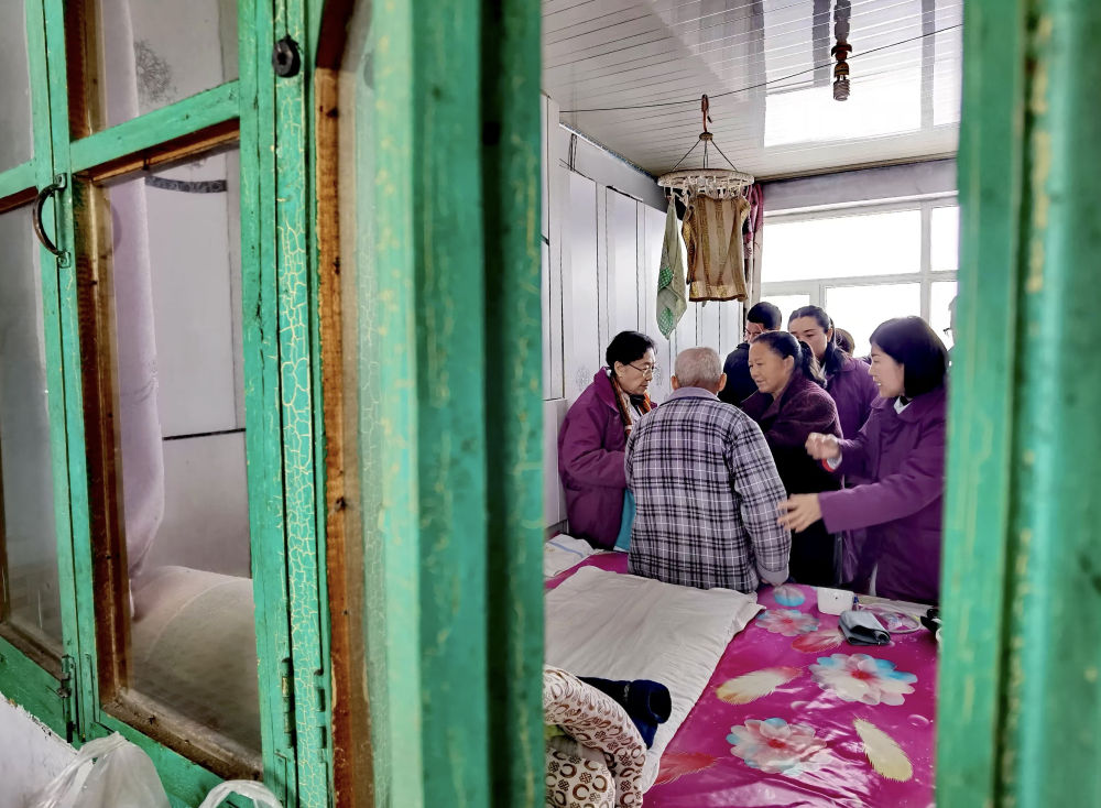 2024年11月26日,87歲的遼寧金秋醫(yī)院“菊香愛心團(tuán)隊(duì)”領(lǐng)隊(duì)張菊香(左一)冒雪到行動(dòng)不便的患者家中診治。多年來,數(shù)百名熱心公益事業(yè)的“菊香愛心團(tuán)隊(duì)”醫(yī)務(wù)工作者在遼寧的鄉(xiāng)村、街道社區(qū)為群眾提供優(yōu)質(zhì)醫(yī)療服務(wù),先后開展大型義診活動(dòng)近百次,診治群眾超過6萬人次;舉辦健康科普講座超過60場(chǎng),受益群眾超過4萬人;培訓(xùn)鄉(xiāng)村基層醫(yī)務(wù)人員上千人。
