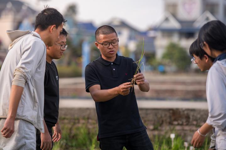 今年37歲的黃光福是云南大學(xué)農(nóng)學(xué)院的一名青年教師,同時(shí)也是云南大學(xué)在云南省勐海縣勐遮鎮(zhèn)曼恩村成立的多年生稻科技小院的負(fù)責(zé)人。多年來(lái),他帶領(lǐng)學(xué)生扎根田間,進(jìn)行技術(shù)攻關(guān)。團(tuán)隊(duì)利用長(zhǎng)雄野生稻特有的地下莖無(wú)性繁殖能力,成功培育出“云大25”“云大107”等新品種,突破性地實(shí)現(xiàn)水稻“一次栽種、連續(xù)收割”,讓“割韭菜般收稻子”的農(nóng)業(yè)成果從實(shí)驗(yàn)室走向田間地頭。這是2025年2月27日,青年教師黃光福(中)在試驗(yàn)田間給學(xué)生授課。