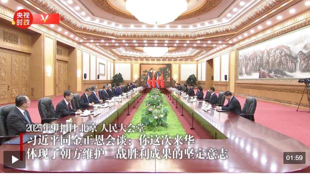 9月4日晚,中共中央總書記、國家主席習近平在北京人民大會堂同來華出席紀念中國人民抗日戰(zhàn)爭暨世界反法西斯戰(zhàn)爭勝利80周年活動的朝鮮勞動黨總書記、國務委員長金正恩舉行會談。