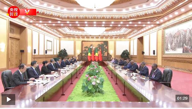 9月4日中午,國家主席習近平在北京人民大會堂會見來華出席紀念中國人民抗日戰(zhàn)爭暨世界反法西斯戰(zhàn)爭勝利80周年活動的剛果(布)總統(tǒng)薩蘇。兩國元首宣布將雙邊關(guān)系定位提升為中剛高水平命運共同體。