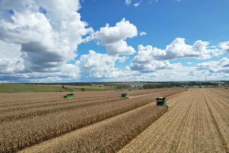 2025年9月10日,在北大荒集團黑龍江建設農場有限公司第三管理區(qū),大馬力機車在進行玉米搶收作業(yè)。