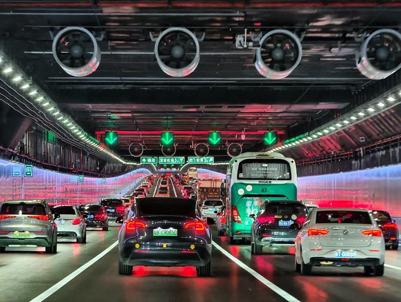 △2024年6月30日,深中通道正式通車,這是開通首日的深中通道海底沉管隧道內的車流。